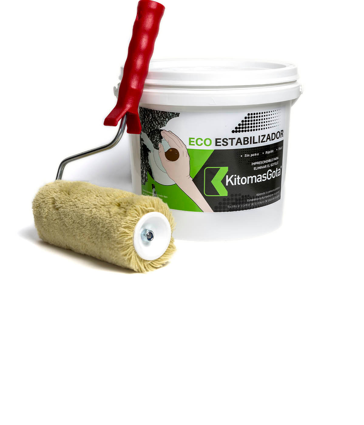 Con 1 kg de pasta de lucir podemos tapar entre 1 y 1,5 m² y, dependiendo del grosor de la gota, debemos dar una o más manos de producto. Con 1 kg de Ecoestabilizador de Kitomasgota podemos hacer entre 5 y 6 m². Necesitamos únicamente aplicar una mano de producto sin importar el grosor de la gota.