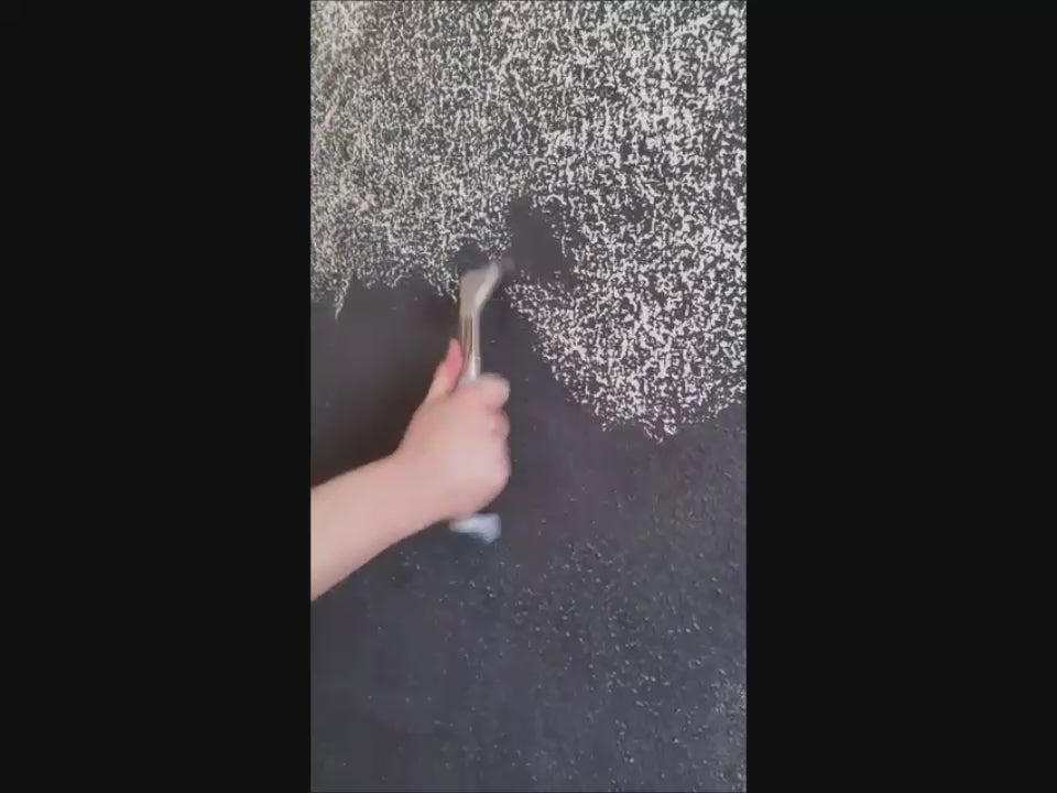 Después de extender uniformemente por la pared con un rodillo el Ecoestabilizador "Kitomasgota" podremos empezar a quitar los picos de la gota con rasqueta de carburo de tungsteno. El EcoEstabilizador facilitará su desprendimiento.
